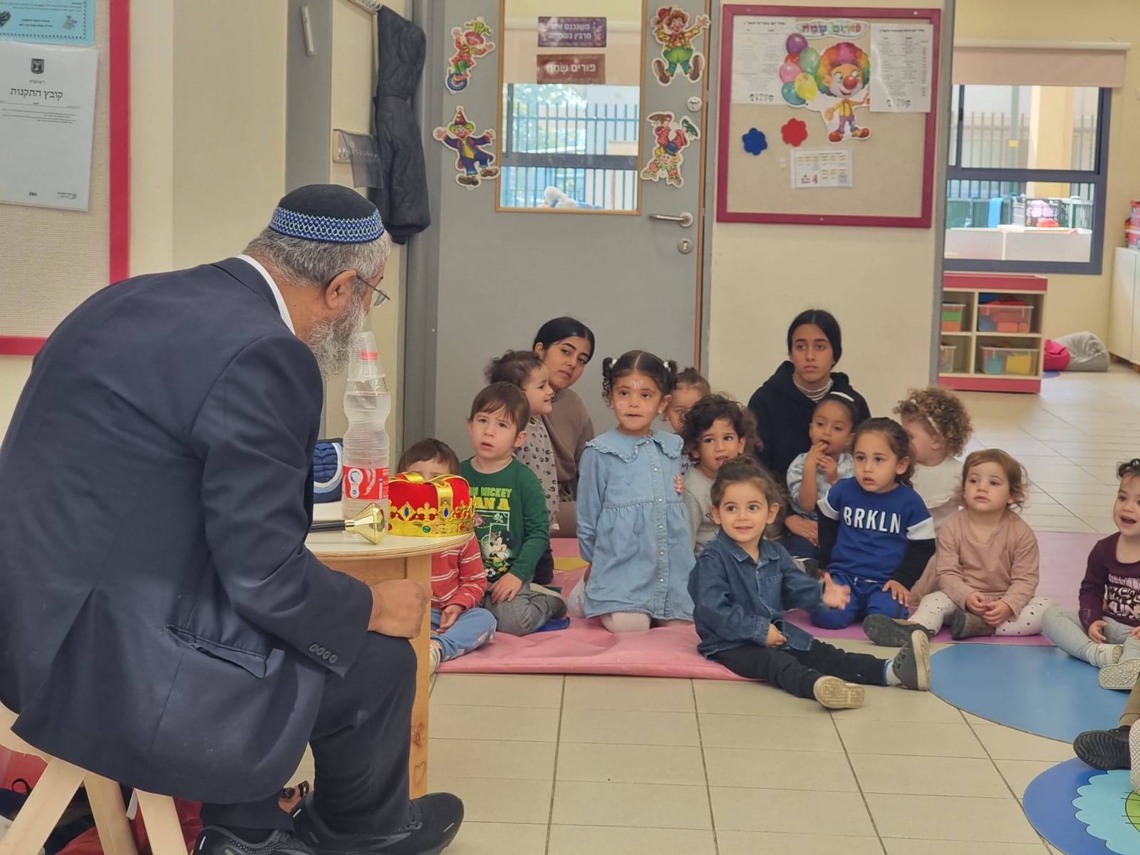 בבני ראם: רב המושב הגיע לספר לילדים במעון איילת השחר על פורים והמגילה ואחרי הלמידה הגיעה הנתינה- ילדי המעון הלכו לחלק משלוח מנות לגדעון השומר