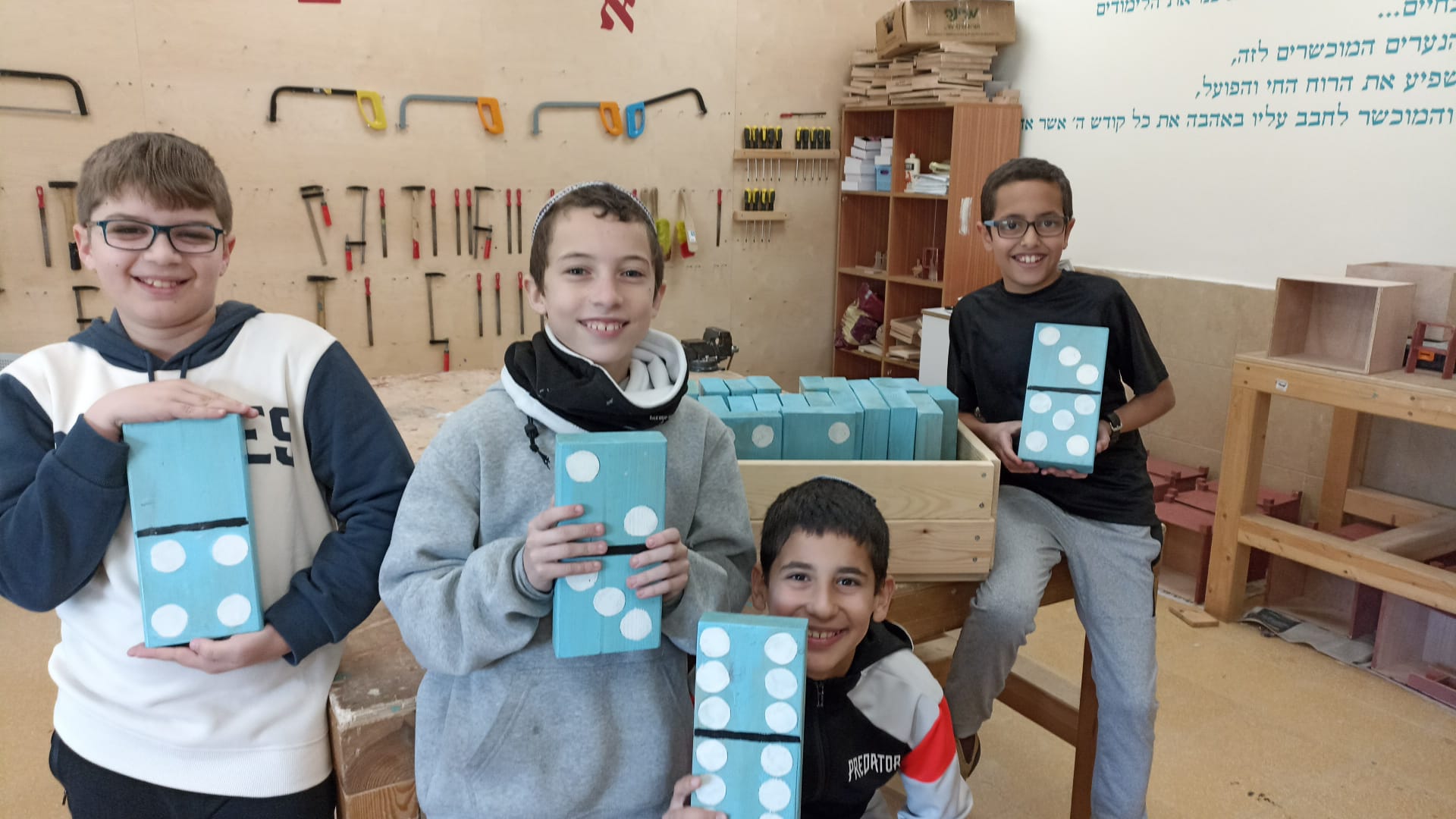 קבוצה של תלמידים מכיתה ו' החליטו לקחת על עצמם פרוייקט גדול- הם רצו להכין משחק לכיתה אבל לא היה להם רעיונות. הקבוצה החלה לחקור ולחפש מידע על משחקים שעשויים מעץ. כשמצאו את הדומינו הם התלהבו מהרעיון והתחילו, בסיוע של המורה לנגרות ציפי, לבצע.