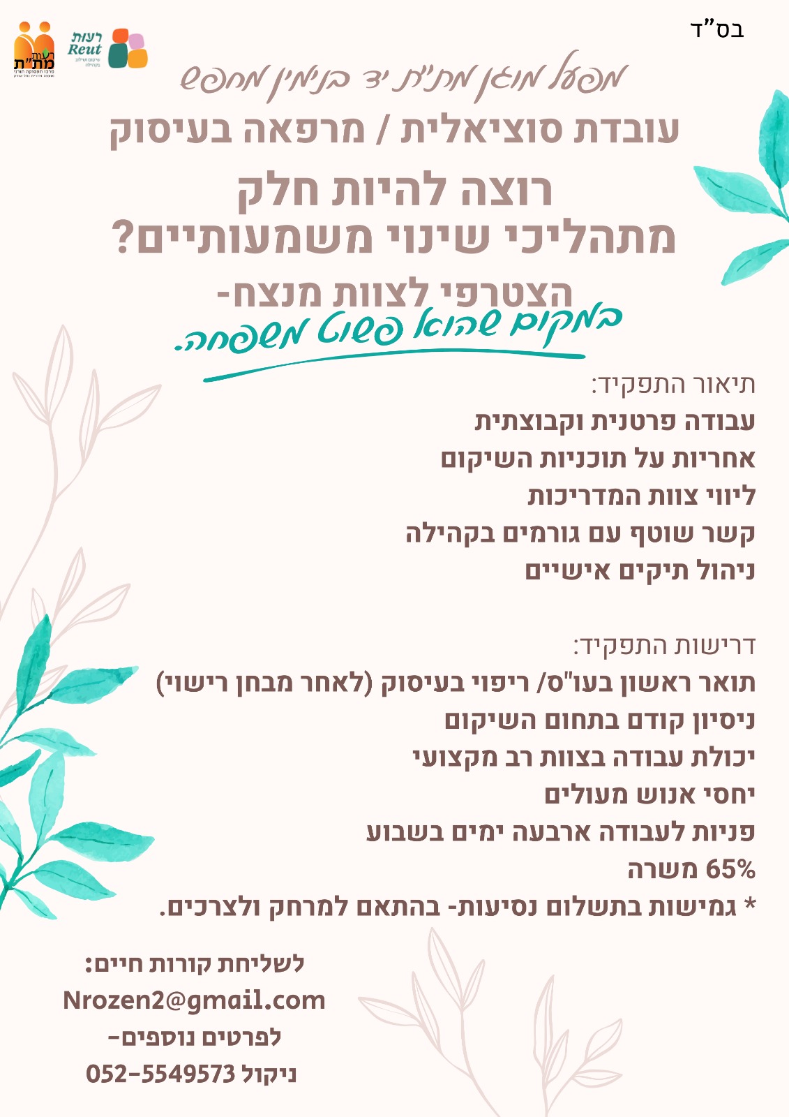 דרוש/ה עובד/ת סוציאלית/ מרפא/ה בעיסוק