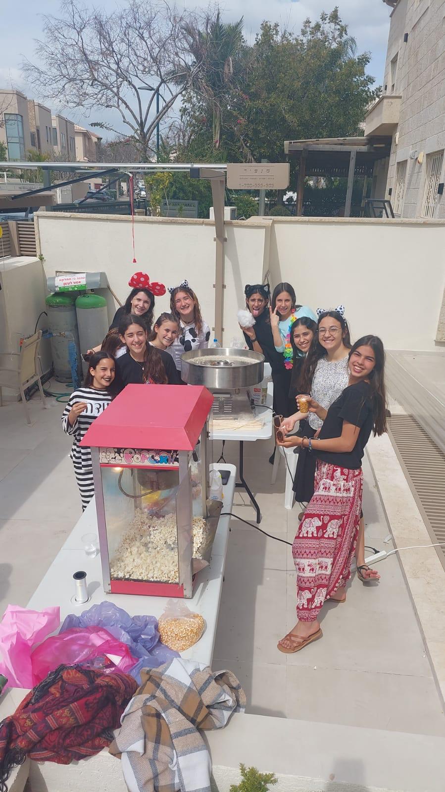 כלל הסניף הוזמן לקבל משלוח מנות בביתה, שם חיכו הצוות עם מכונות סוכר ופופקורן ובעיקר עם אווירת פורים שמחה ומגבשת!