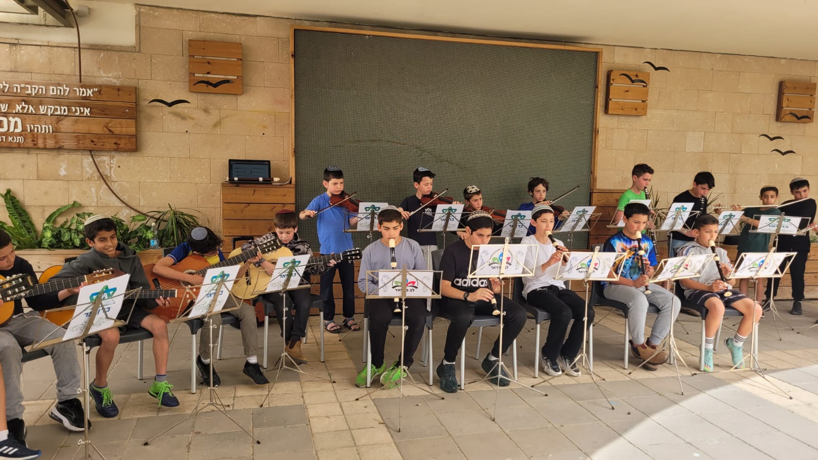 בתמונה תלמידים מברויאר ולב ברויאר מנגנים יחד לכבוד המנהלים