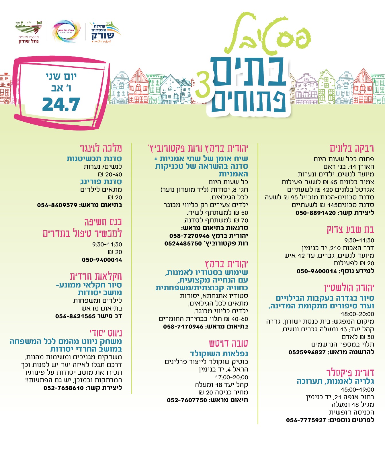 פסטיבל בתים פתוחים יפתח בתשעת הימים והשנה יפתח גם לציבור הכללי ולא רק לתושבי המועצה.