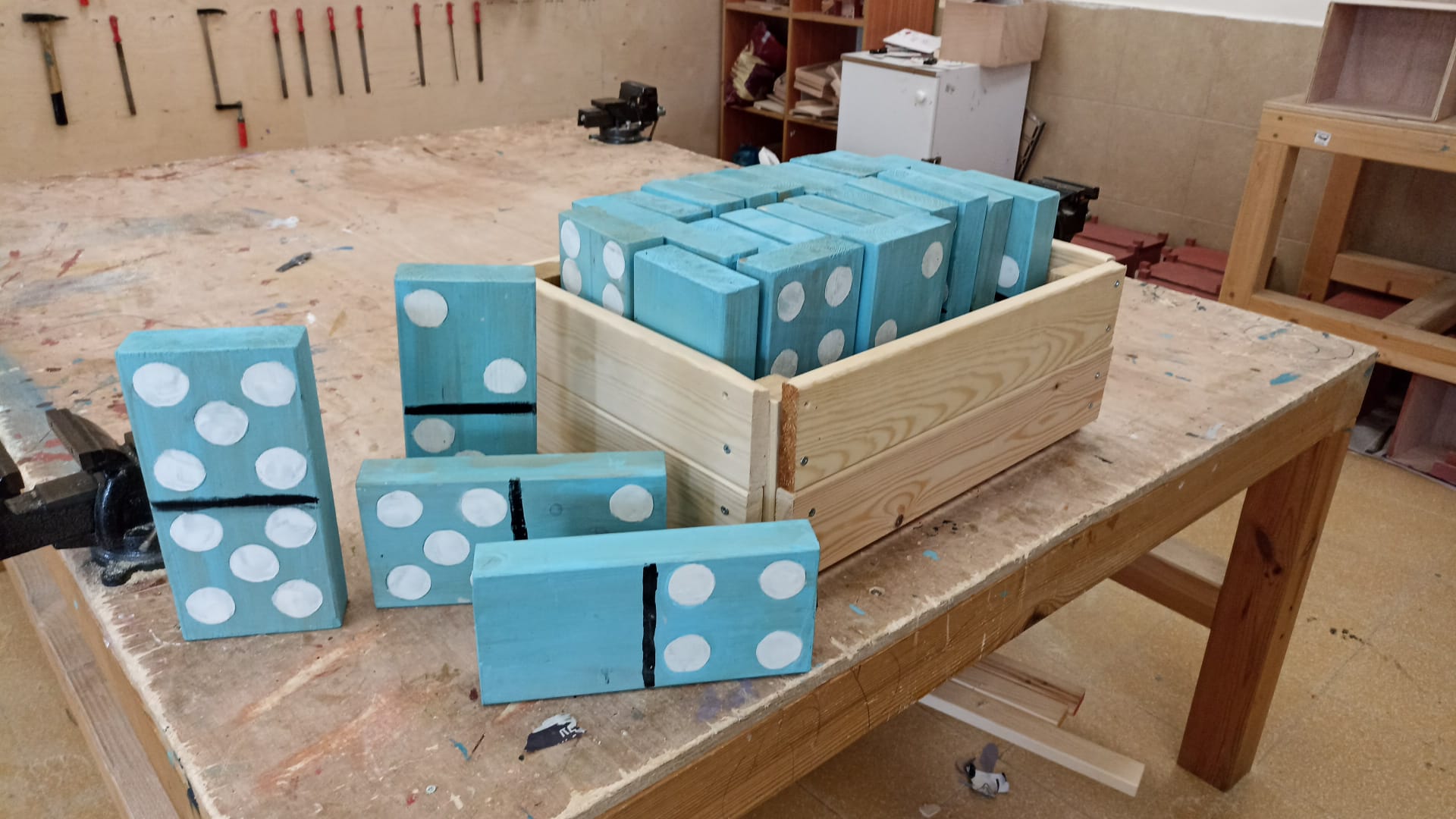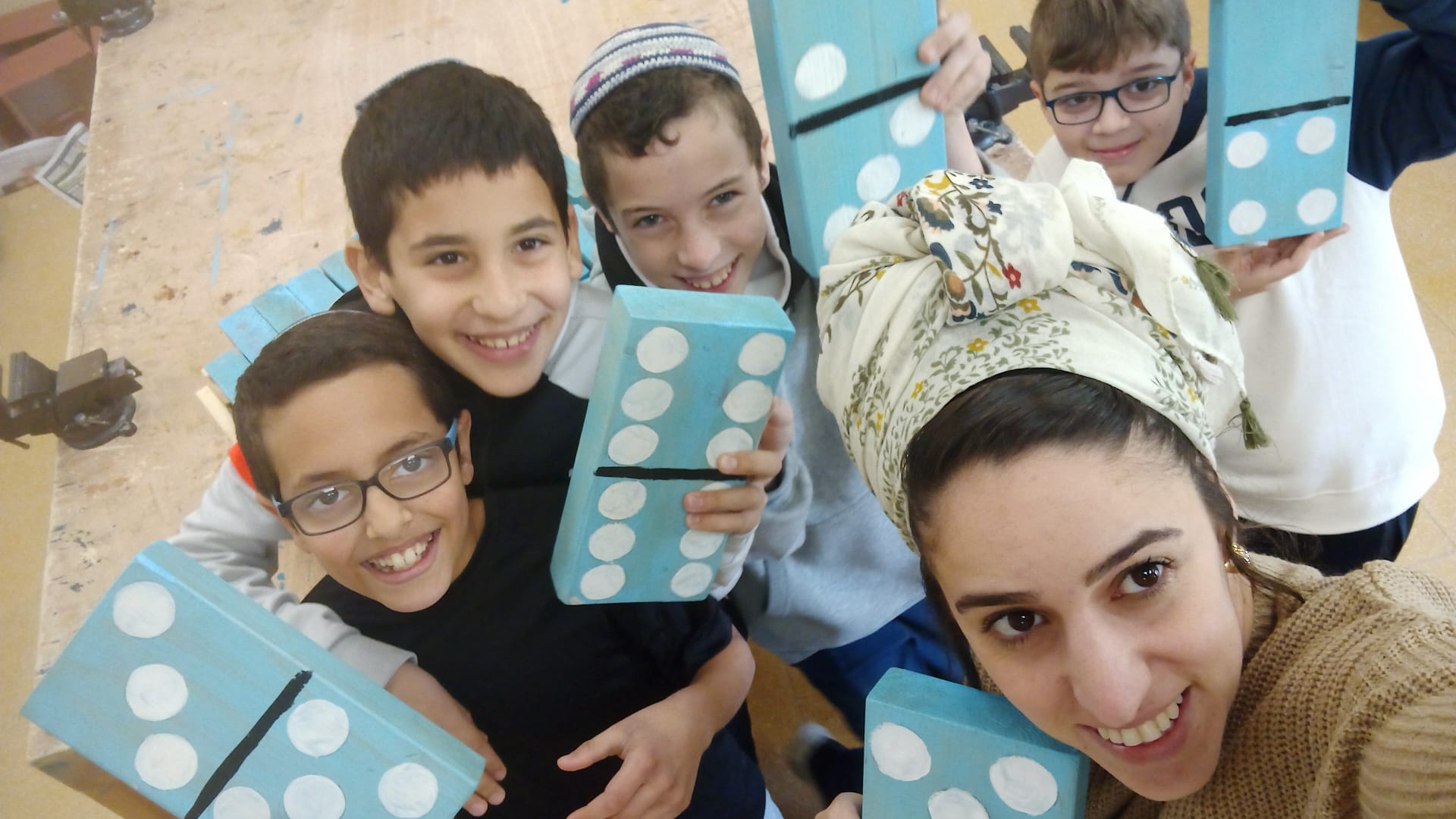 קבוצה של תלמידים מכיתה ו' החליטו לקחת על עצמם פרוייקט גדול- הם רצו להכין משחק לכיתה אבל לא היה להם רעיונות. הקבוצה החלה לחקור ולחפש מידע על משחקים שעשויים מעץ. כשמצאו את הדומינו הם התלהבו מהרעיון והתחילו, בסיוע של המורה לנגרות ציפי, לבצע.