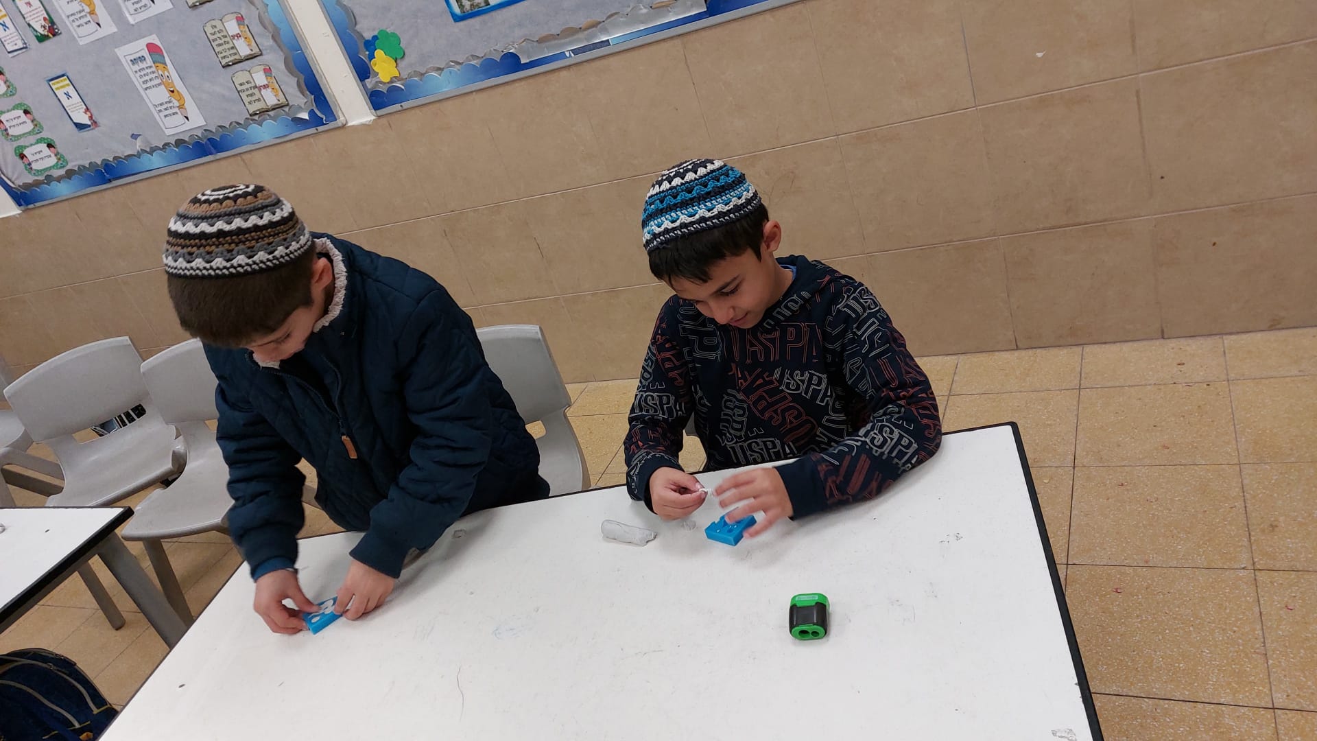 בסיום הפעילות, התלמידים מחרוזות מצדפים מלאכותיים.