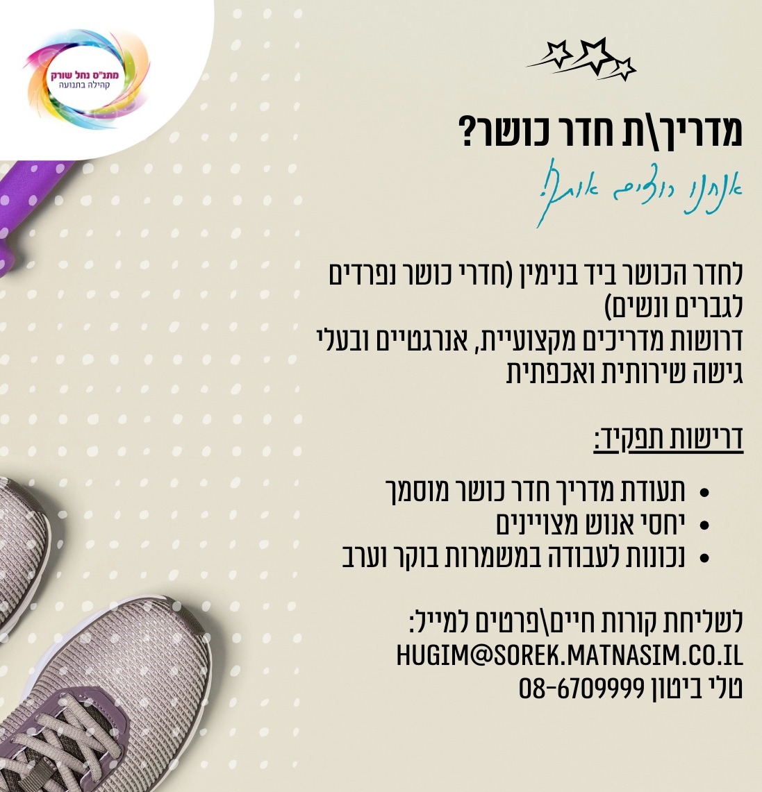 דרוש/ה מדריכ/ת כושר לחדר כושר